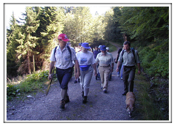 Müßig steil geht es auf die Höhe, die höchsten Schwarzwald-berge, Feldberg 1493m und Belchen 1414m zu erklimmen, die eine herrliche Fernsicht versprechen. Bis zur Rheinebene und das Elsass, Schweizer Jura , Vogesen, bis hin zu den schneebedeckten Alpengipfel von der Zugspitze bis zum Montblanc.